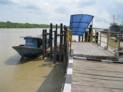 Jam setengah 11-an, kita sampai! Ternyata ni kota mewah juga. Begitu keluar mobil, suara burung walet nyambut kita, nyaring bgt. Karna penduduk disana rata2 punya usaha sarang burung walet. Di pinggir kota kita langsung di sambut bangunan pemerintah baru (such as museum dan kantor/gedung pemerintah) dan banyak yang masih dalam proses pembangunan. Tapi oh tapi, kantor adpel yang kita tuju ternyata agak menyedihkan. Kontras sama bangunan2 di pinggir kota. Bangunannya dari kayu, lantai semen, dan ukurannya kecil, sama kaya rumah gw kali. Dan pegawai disitu katanya cuma 11 orang. Ga heran, karena ternyata si pelabuhan udah mati suri sejak taun lalu! Oh nooooo..! Alasannya, pelabuhan itu sendiri ga nyambung langsung ke laut, tapi ke alur sungai menuju laut, dan kegiatan perdagangan dll smua udah pindah ke Dumai. Selain itu, penduduk sekitar situ juga punya kapal dan dermaga sendiri di belakang rumahnya, jadi ga pake jasa pelabuhan itu lagi. Then, kita dianter naik motor sm orang2 situ ke Pelabuhan Bagan Siapi-api. One word. Pathetic. Dermaganya dari kayu yg kayanya bisa roboh sewaktu-waktu. Kapal yang ada cuma kapal nelayan dan kapal penumpang kecil. Waktu kita ke sana, ada kapal penumpang dn barang yg baru mo berangkat, penumpangnya cm 1 keluarga aja (5 orang). Menyedihkan deh. Atap fiber yang keliatan baru, ternyata di pasang oleh Pemda, bukan Pelindo yang harusnya adalah 'atasan' pelabuhan ini. Menurut Pak Alvian, orang adpel yang nerima kita, sebenernya pelabuhan itu udah diminta Pemda untuk diambil alih, tapi Pelindo ga mau ngelepasin, sayangnya mereka juga ga ngurusin, jadi pegawai disitu kasian.. Banyak diantara mereka yang akhirnya pindah ke Pemda yang tentu aja lebih makmur.